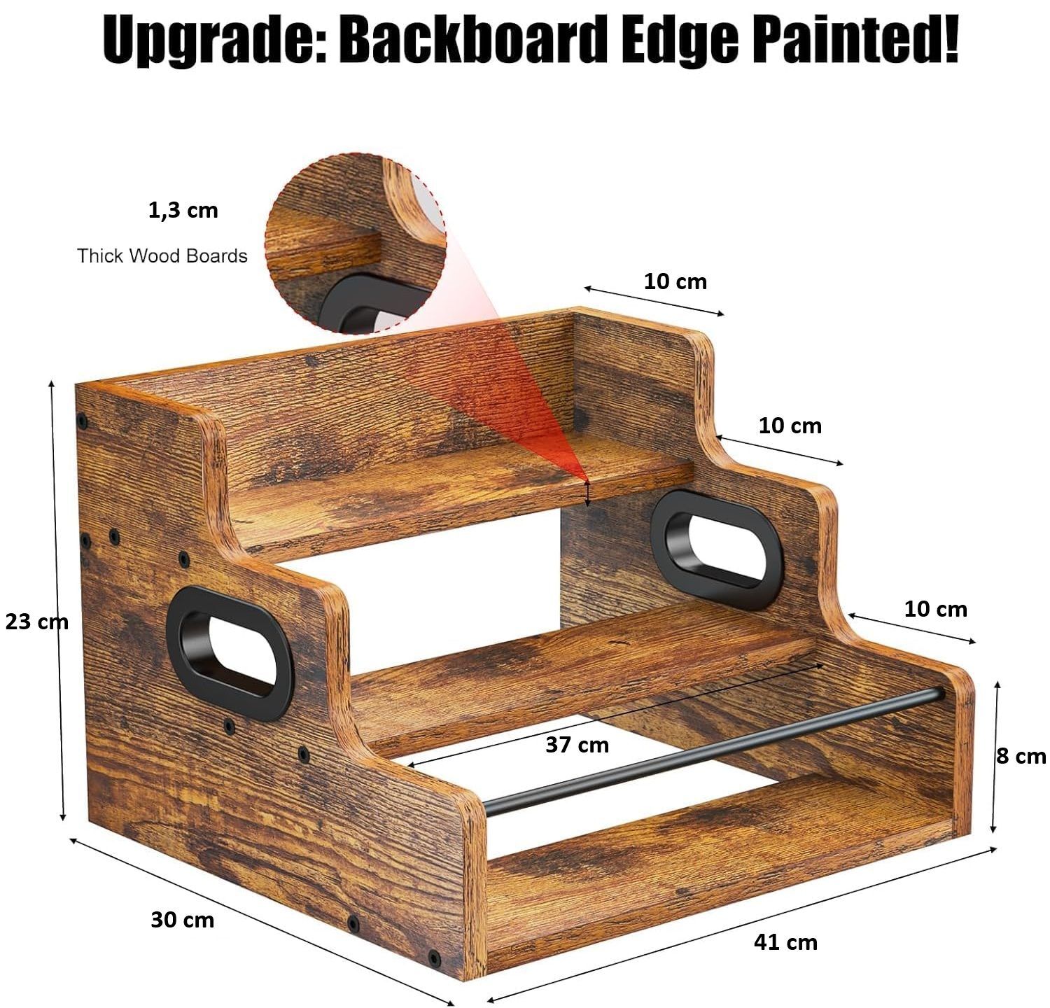 • SAFETY & EASY ACCESS FEATURES: The front safety bar keeps bottles from slipping, while the open step design ensures everything is visible and easy to grab. Built-in handles allow for effortless lifting and moving when reorganizing or cleaning your space.