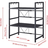 CARLA HOME 3-Tier Microwave Oven Rack with Adjustable Metal Kitchen Shelf Stand for Countertop Storage and 6 Hooks for Utensils