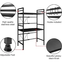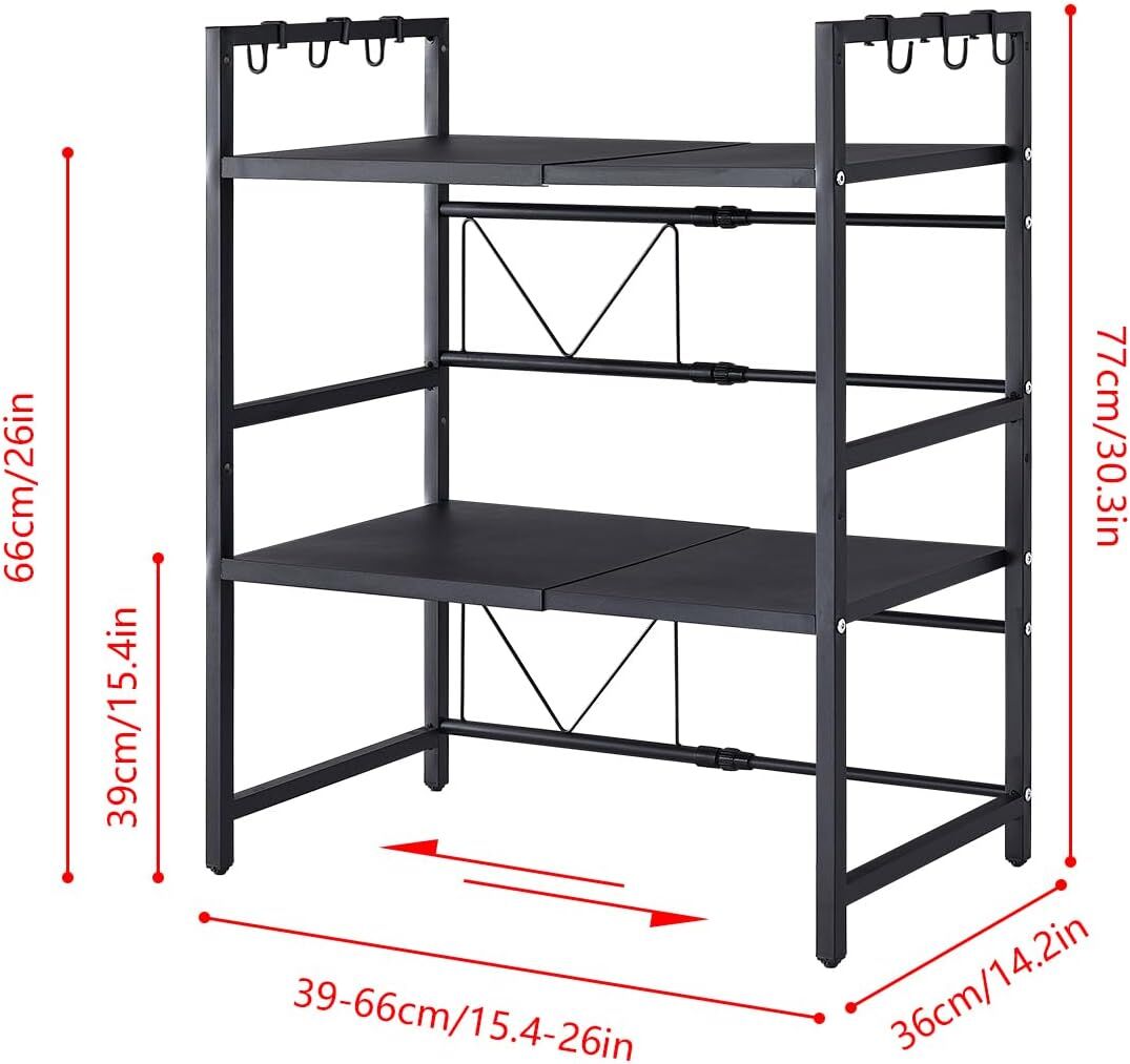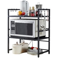 CARLA HOME 3-Tier Microwave Oven Rack with Adjustable Metal Kitchen Shelf Stand for Countertop Storage and 6 Hooks for Utensils