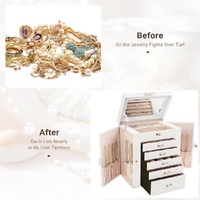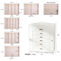 CARLA HOME 6-Layer Large Jewelry Box for Women withDrawers, Mirror, Lock, Necklace Hooks & Side Compartments for Rings, Earrings, Bracelets, Gifts (White)