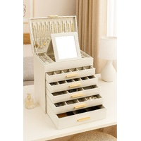 CARLA HOME 6-Layer Large Jewelry Organizer Box for Women with Mirror, Drawers, Hooks & Dividers for Rings, Necklaces, Bracelets, Ideal Gift for Women (White)