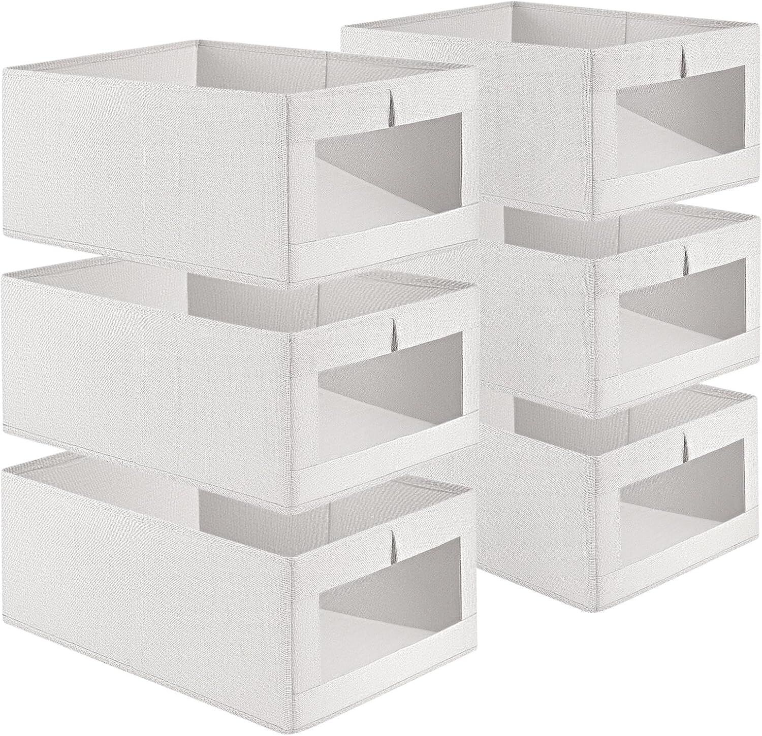 CARLA HOME 6 Pack Closet Storage Bins with Clear Window for Shelves, Clothes, Toys, Wardrobe & Bedroom Organization