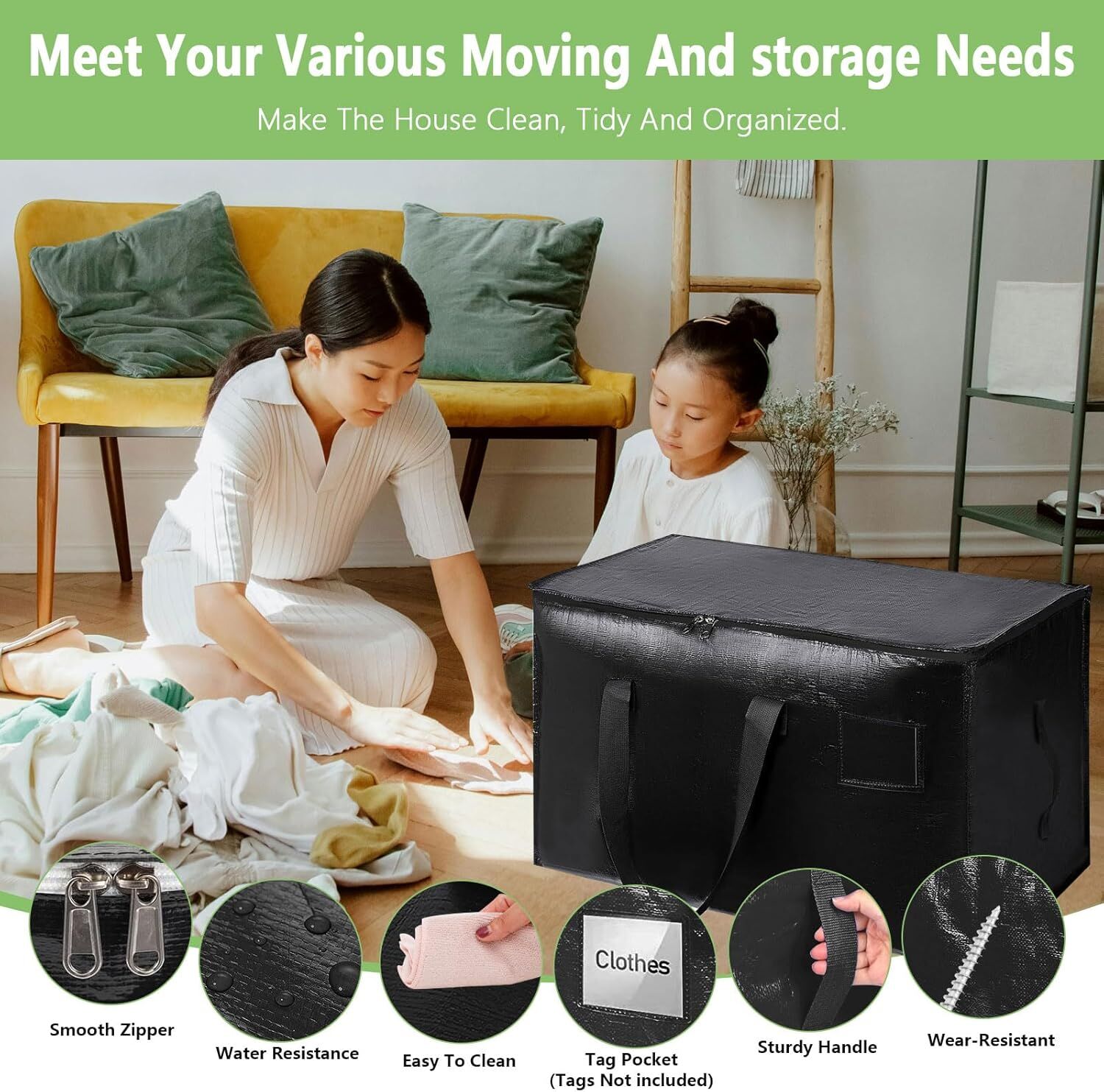 • HEAVY DUTY & REINFORCED DESIGN: Crafted from tear-resistant 200 GSM coated polypropylene, these heavy duty storage bags support up to 40kg. Reinforced wrap-around handles and double-stitched seams ensure reliable strength for long-term use.