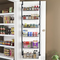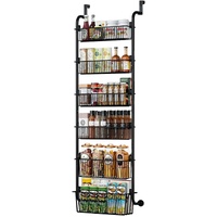 CARLA HOME 6-Tier Over the Door Organizer Heavy-Duty Metal Pantry Rack with Hanging Baskets for Home Kitchen Storage & Bathroom Door Organization (Black)