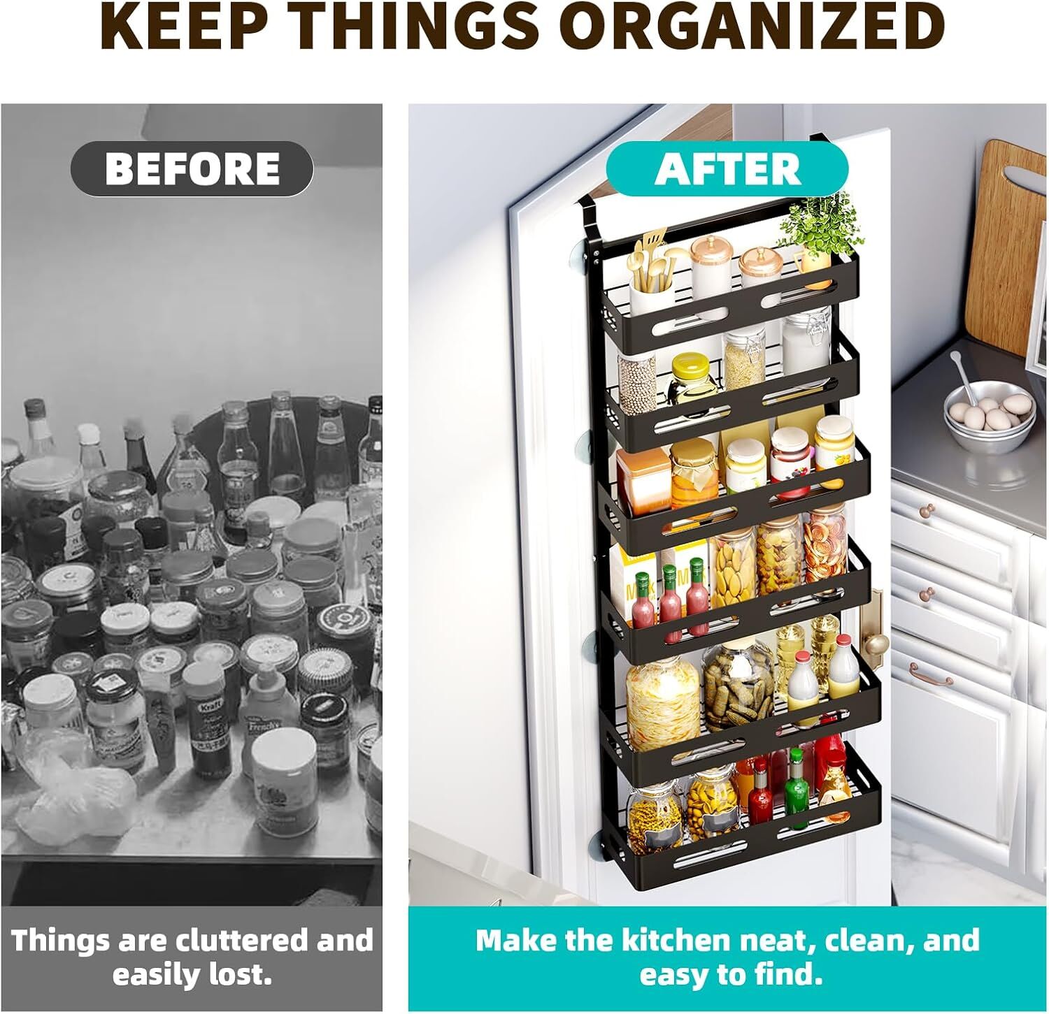 CARLA HOME 6 Tier Over the Door Organizer with Adjustable Metal Pantry Storage Rack and Hanging Baskets for Kitchen and Bathroom
