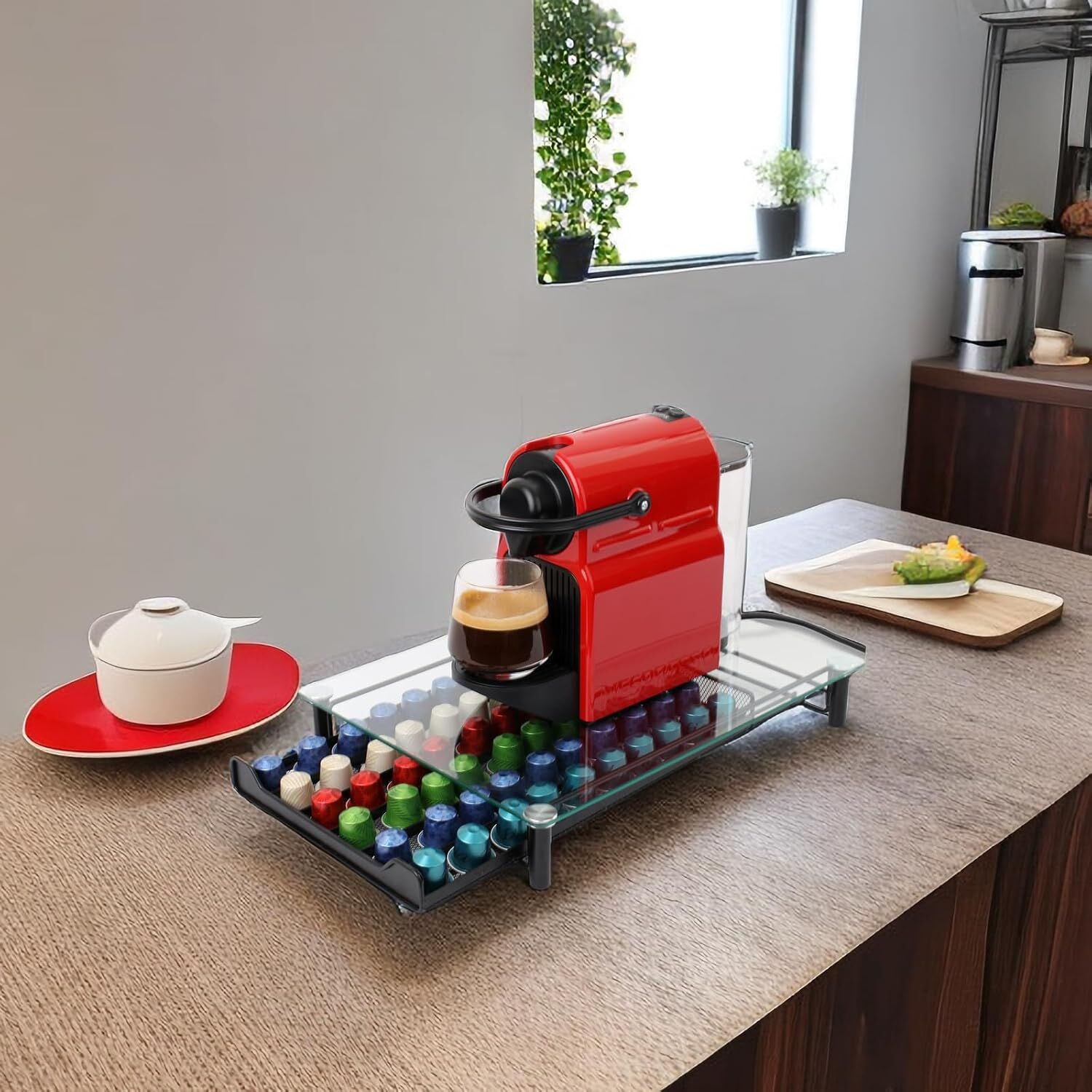CARLA HOME 60 Coffee Pod Holder Drawer with Tempered Glass Capsule Organizer for Nespresso Pods and Sliding Drawer for Kitchen Countertop