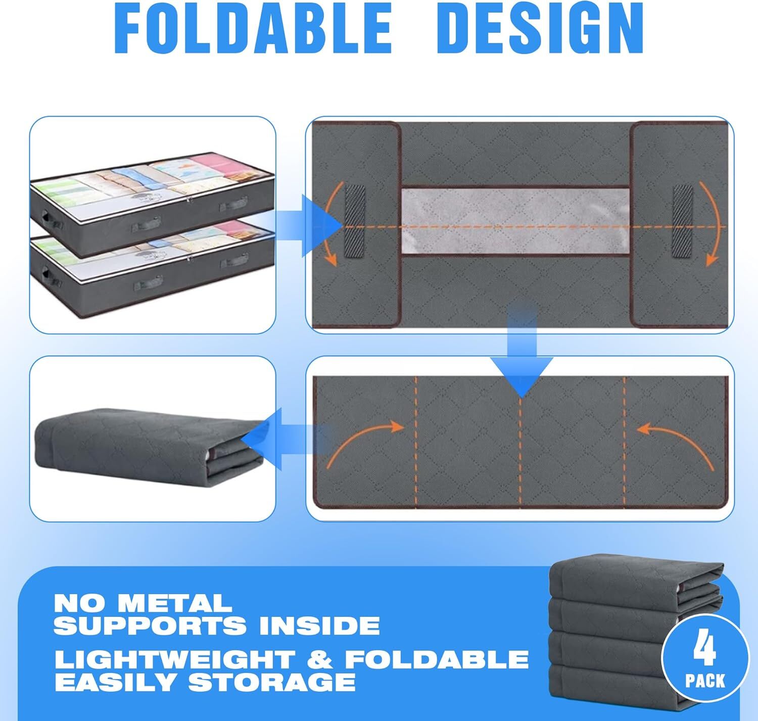 CARLA HOME 8 Pack Underbed Storage Bins with 90L Large Capacity Storage Containers for Comforters, Linen, Pillows, Toys, Towels, Blankets