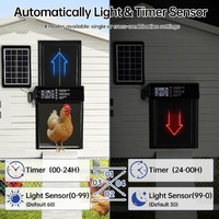 • 4 AUTOMATIC MODES FOR EASY SCHEDULING – Choose between light sensor, timer, remote or manual settings. The door can open at dawn or at a selected time and close at dusk, offering safe and stress-free poultry management even when you’re away.