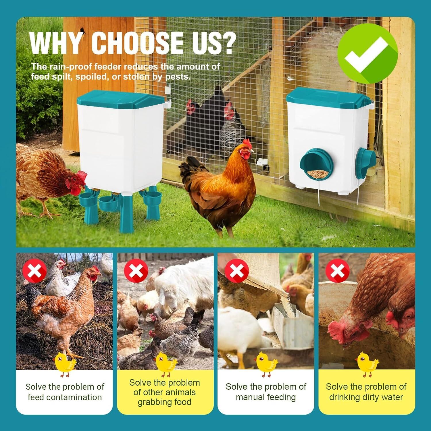 CARLA HOME Automatic Chicken Feeder Waterer Set with 8KG Food 7L Water Capacity for Coop, Chickens, Ducks, Quails (Blue)