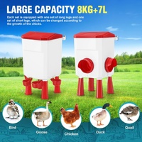 • LARGE 8KG + 7L CAPACITY: Designed to feed multiple birds over several days, this set includes a spacious 8KG food bucket and 7L water tank—ideal for chickens, ducks, quails, and small flocks. Less refilling means more peace of mind.