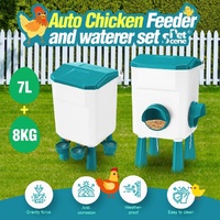 CARLA HOME Automatic Chicken Feeder Waterer Set with 8KG Food 7L Water Capacity for Coop, Chickens, Ducks, Quails (Blue)