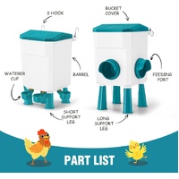 • LARGE 8KG + 7L CAPACITY: Designed to feed multiple birds over several days, this set includes a spacious 8KG food bucket and 7L water tank—ideal for chickens, ducks, quails, and small flocks. Less refilling means more peace of mind.