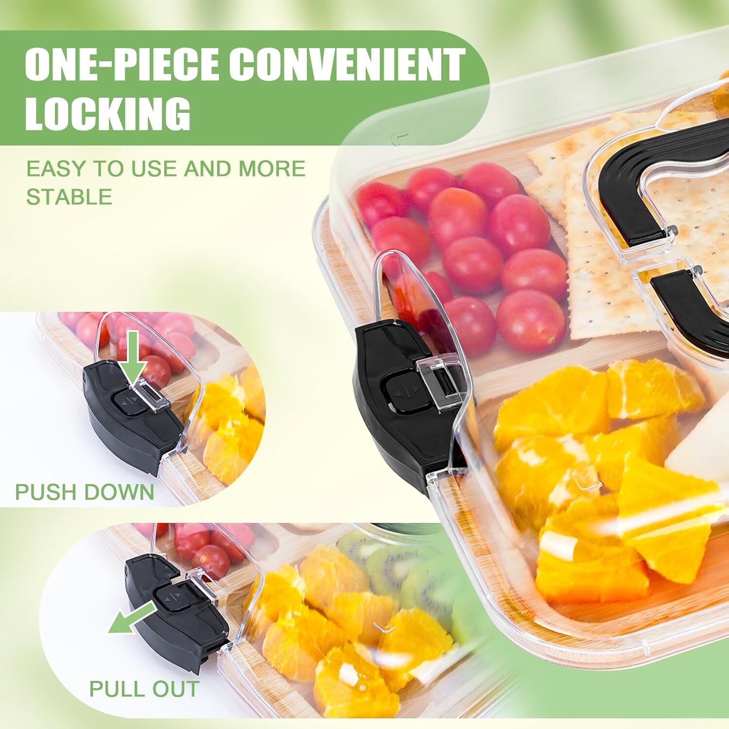 CARLA HOME Bamboo Charcuterie Board with Lid & Handle ideal Gift for Kitchen, Party & Picnic (6 Compartments)