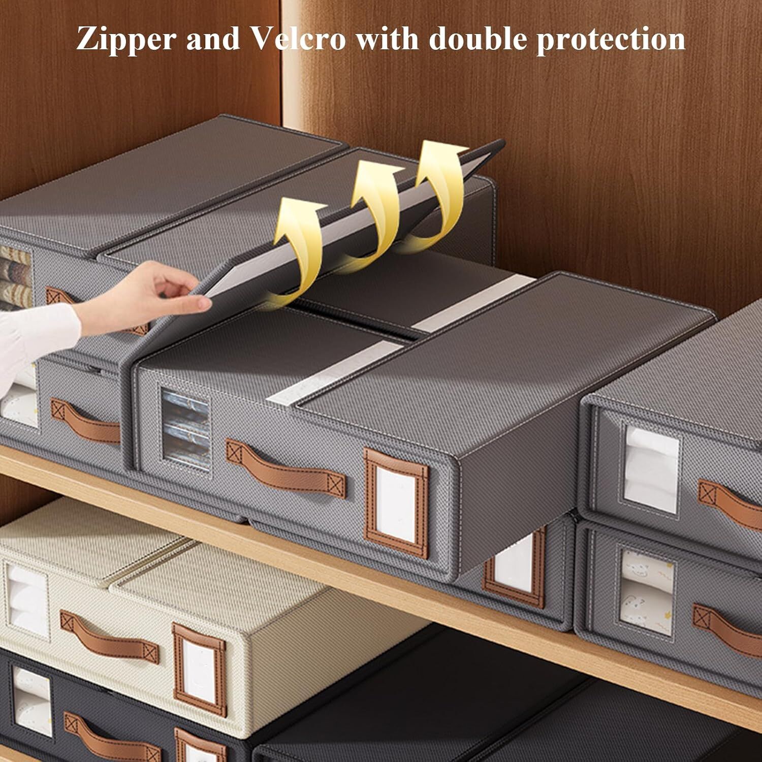• PREMIUM MATERIAL & REINFORCED DESIGN: Crafted from durable, odorless fabric with reinforced cardboard panels, this organizer keeps its shape even when fully packed. The PU leather handle offers a comfortable grip, making it easy to slide in and out of closets without bending or collapsing.