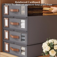 CARLA HOME Bed Sheet Organizer Set of 4 with Handle & Window for Covers, Pillowcases, Blankets, Clothes & Sheets (Beige)
