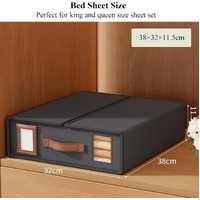 CARLA HOME Bed Sheet Organizer Set of 4 with Handle & Window for Covers, Pillowcases, Blankets, Clothes & Sheets (Black)