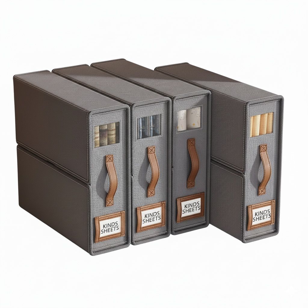 CARLA HOME Bed Sheet Organizer Set of 8 with Handle & Window for Covers, Pillowcases, Blankets, Clothes & Sheets (Grey)