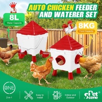 CARLA HOME Chicken Feeder Waterer Set, Automatic Gravity Dispenser with 8KG Food & 8L Water Capacity, 4 Ports & Cups, Clean Poultry Feeding for Coop,