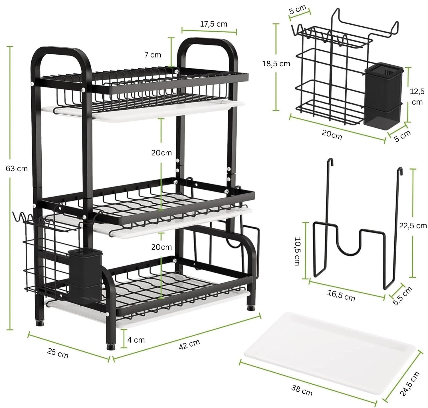 CARLA HOME Dish Drying Rack 3 Tier Large Capacity Kitchen Storage with Utensil and Cutting Board Holder
