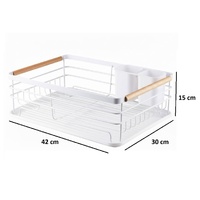 CARLA HOME Dish Drying Rack with Wooden Handles, Removable Cutlery Holder & Drainboard for Kitchen Countertop