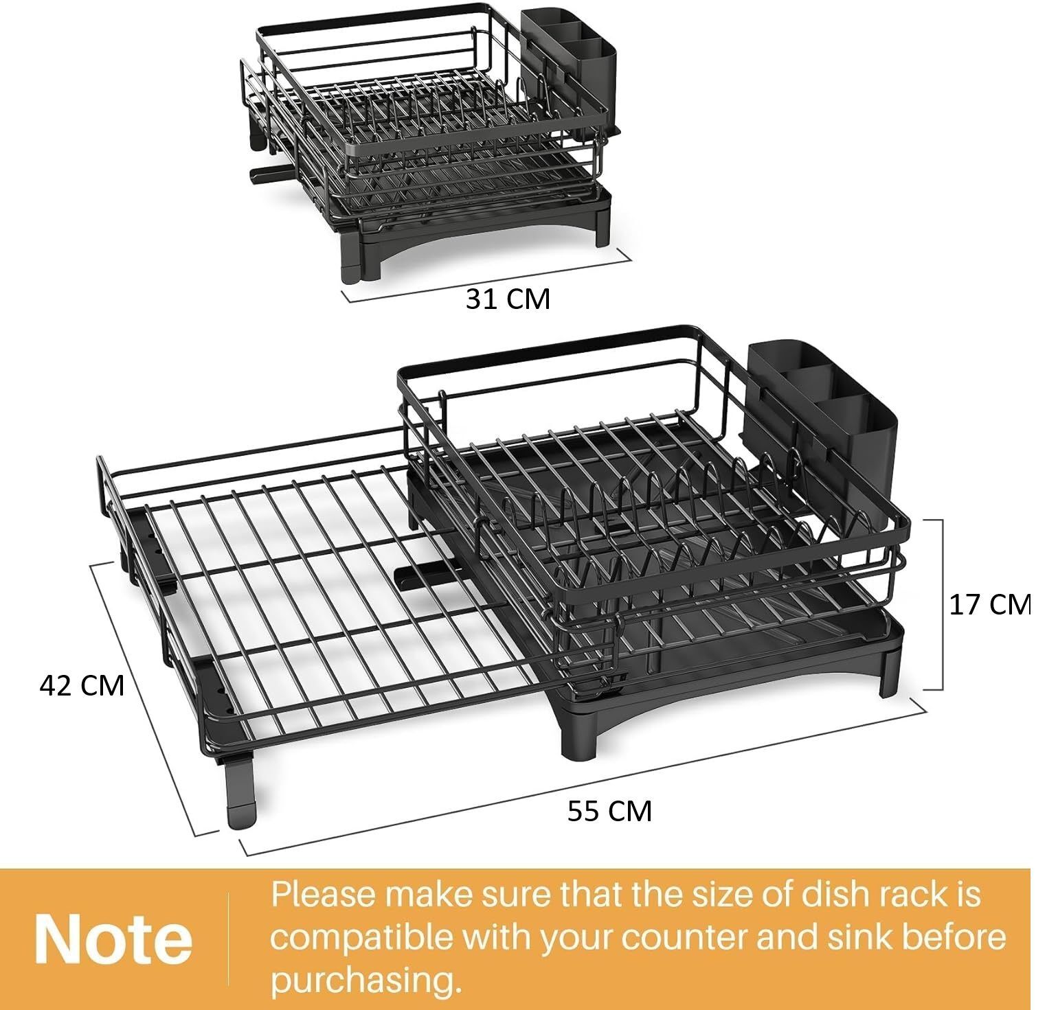 CARLA HOME Expandable Dish Drying Rack with Drainage Spout, Utensil Holder & Drainboardfor Kitchen Countertop Organizer (1 tier)