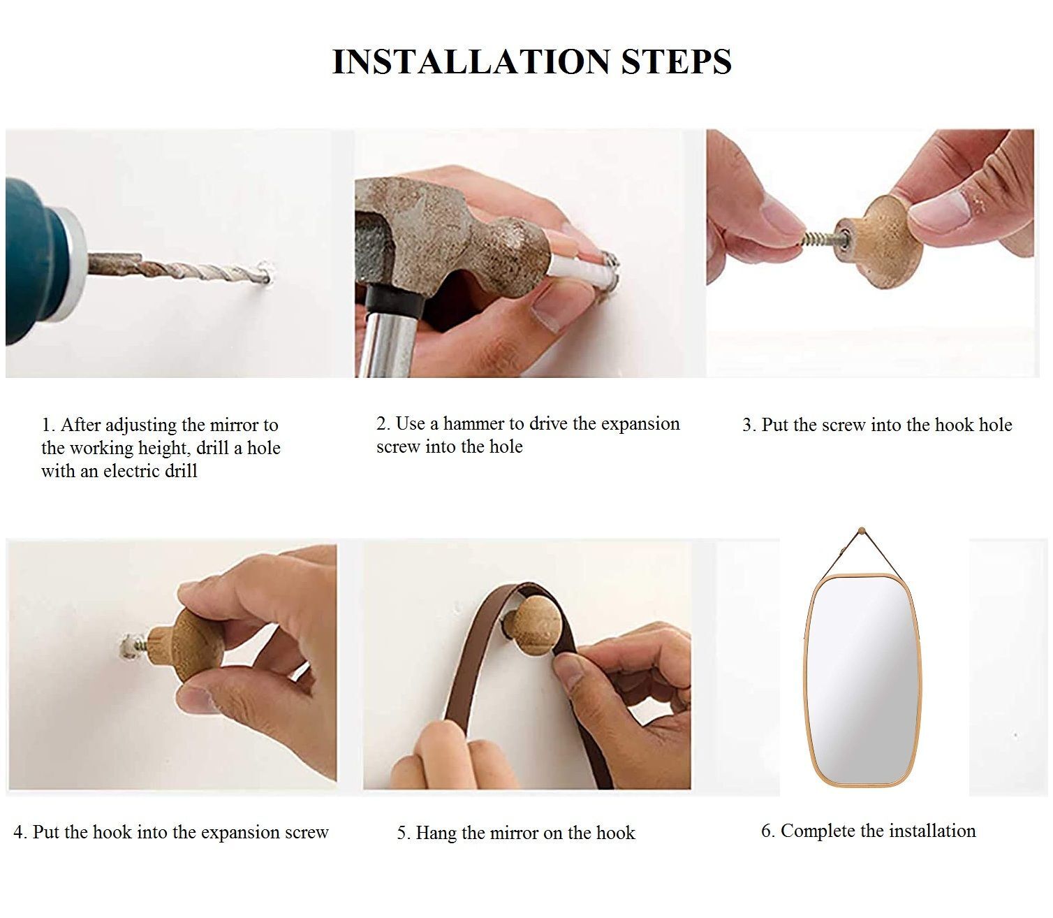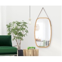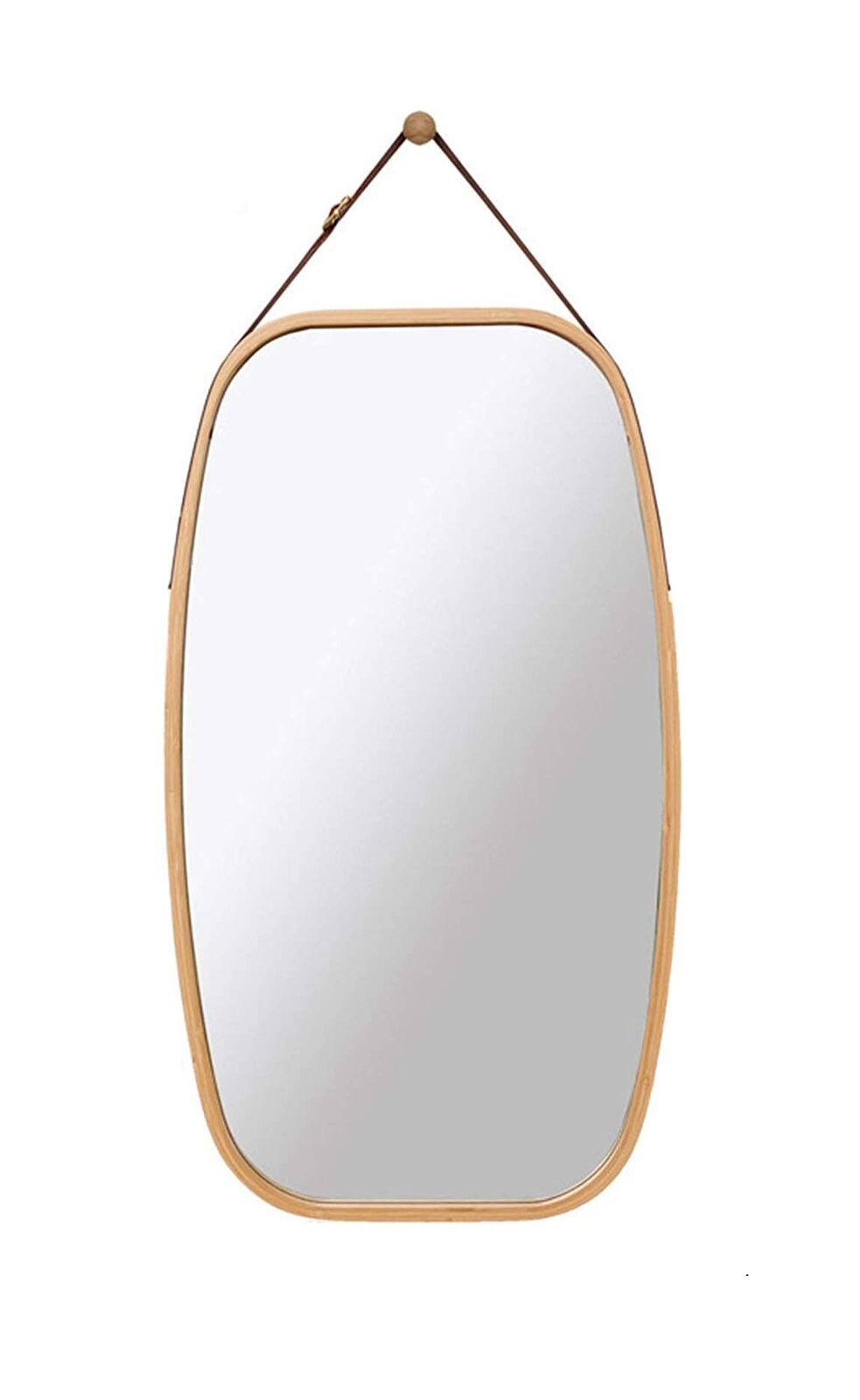CARLA HOME Hanging Wall Mirror 74x43cm - Solid Bamboo Frame and Adjustable Leather Strap for Bathroom and Bedroom, Vanity Mirror, Makeup Mirror, Face Mirrors, Wall Shelf Mirror (Full Length)