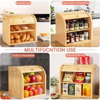 CARLA HOME Large Bamboo Bread Box Storage Organizer with Roll Top for Kitchen Counter