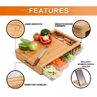 CARLA HOME Large Bamboo Cutting Board and 4 Containers with Mobile Holder gift included for Home Kitchen