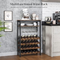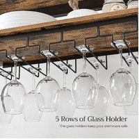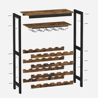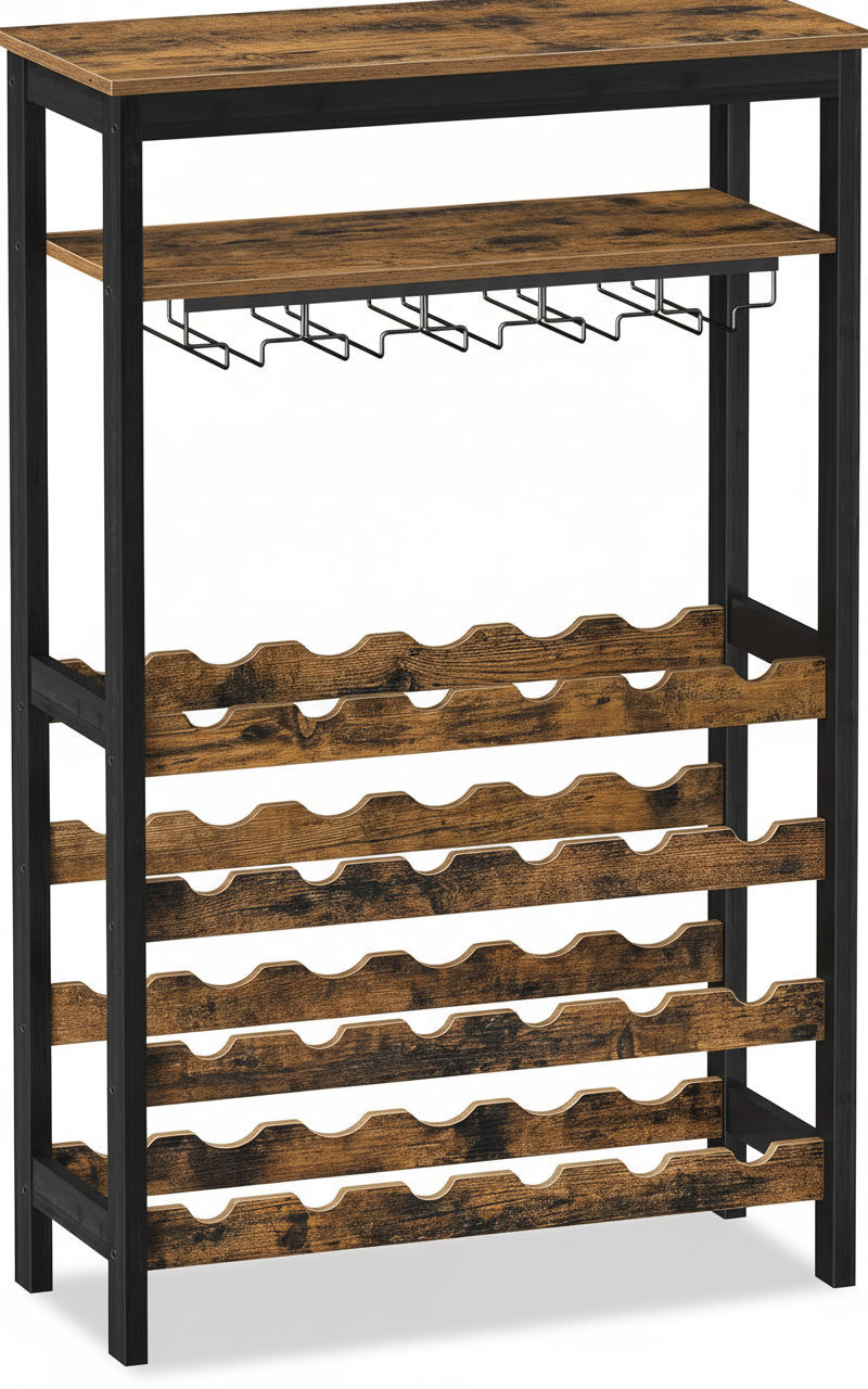 CARLA HOME Large Wine Rack with Glass Holder, Metal Designed Bottle Holder and Wood Countertop up to Wine & Champagne Bottles