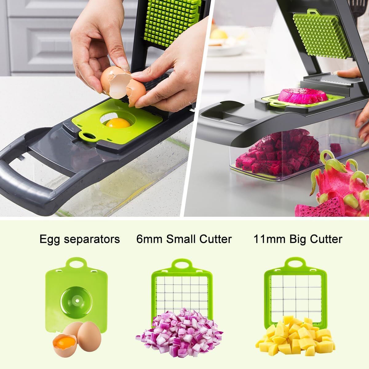 • ALL-IN-ONE KITCHEN PREP SYSTEM: This CARLA HOME 16-in-1 vegetable chopper combines a mandoline slicer, food cutter, dicer, grater, spiralizer, garlic mincer, and egg separator into one compact tool. Designed to simplify everyday cooking, it helps you prep fresh ingredients quickly and neatly.
