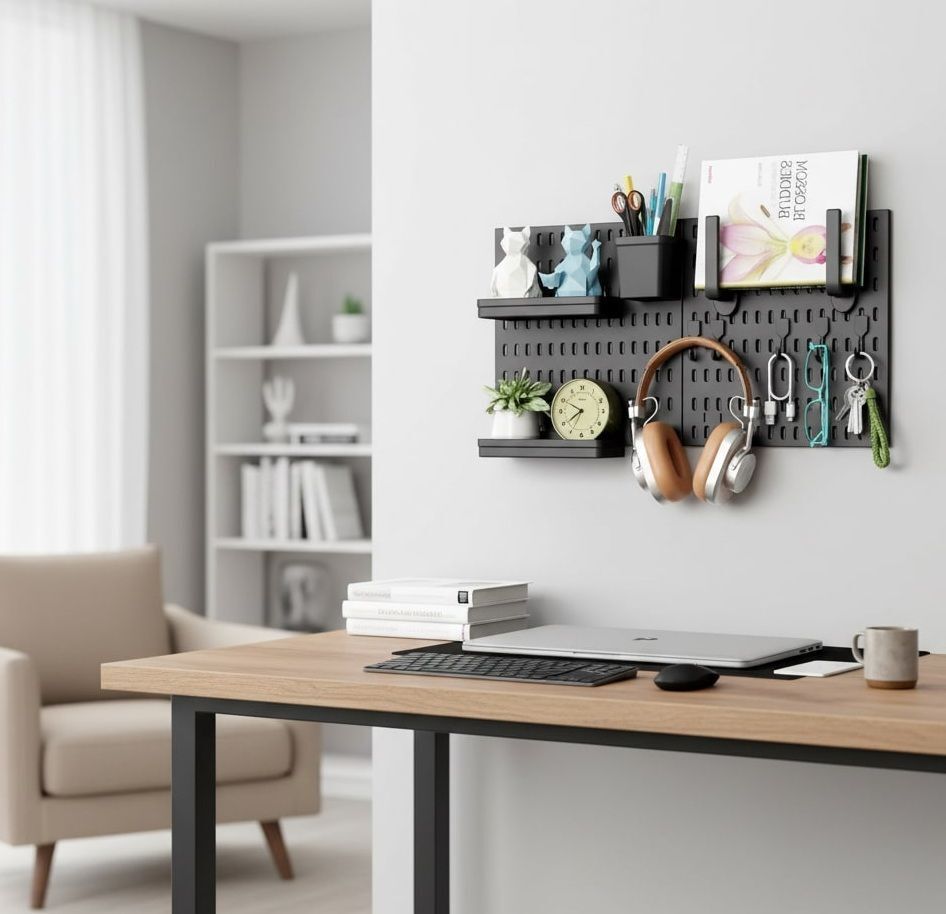 CARLA HOME Pegboard Wall Organizer Kit – 2 Black Modular Pegboards with 10 Accessories for Office, Gaming & Home Storage
