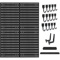 • ALL-IN-ONE STORAGE KIT: This pegboard wall organizer includes 4 modular black panels (30×30 cm each) and 19 accessories: 15 small hooks, 2 U-shaped holders, 1 medium tray (20×10×3.9 cm), and 1 large tray (28×10×2.2 cm). Perfect for organizing your gaming gear, office tools, craft supplies, and collectibles with ease.