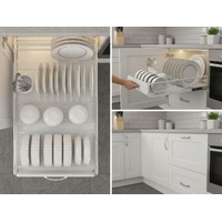 CARLA HOME Pull Out Dish Rack for Kitchen Cabinet with Slide Out Drawer Organizer for Plates, Bowls & Utensils