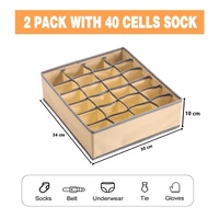 CARLA HOME Set of 2 Fabric Drawer Organizer Divider Storage Boxes for Storing Socks, Underwear, Ties, Scarves (Beige)