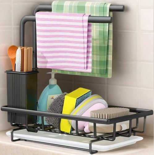 CARLA HOME Sink Caddy Sponge Holder with Drain Tray, Brush Holder & Dishcloth Holder for Kitchen