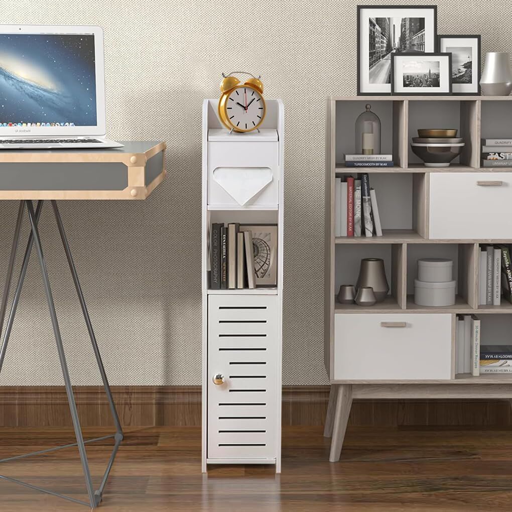 CARLA HOME Slim Bathroom Cabinet with Toilet Paper Holder for Toilet or Laundry Room