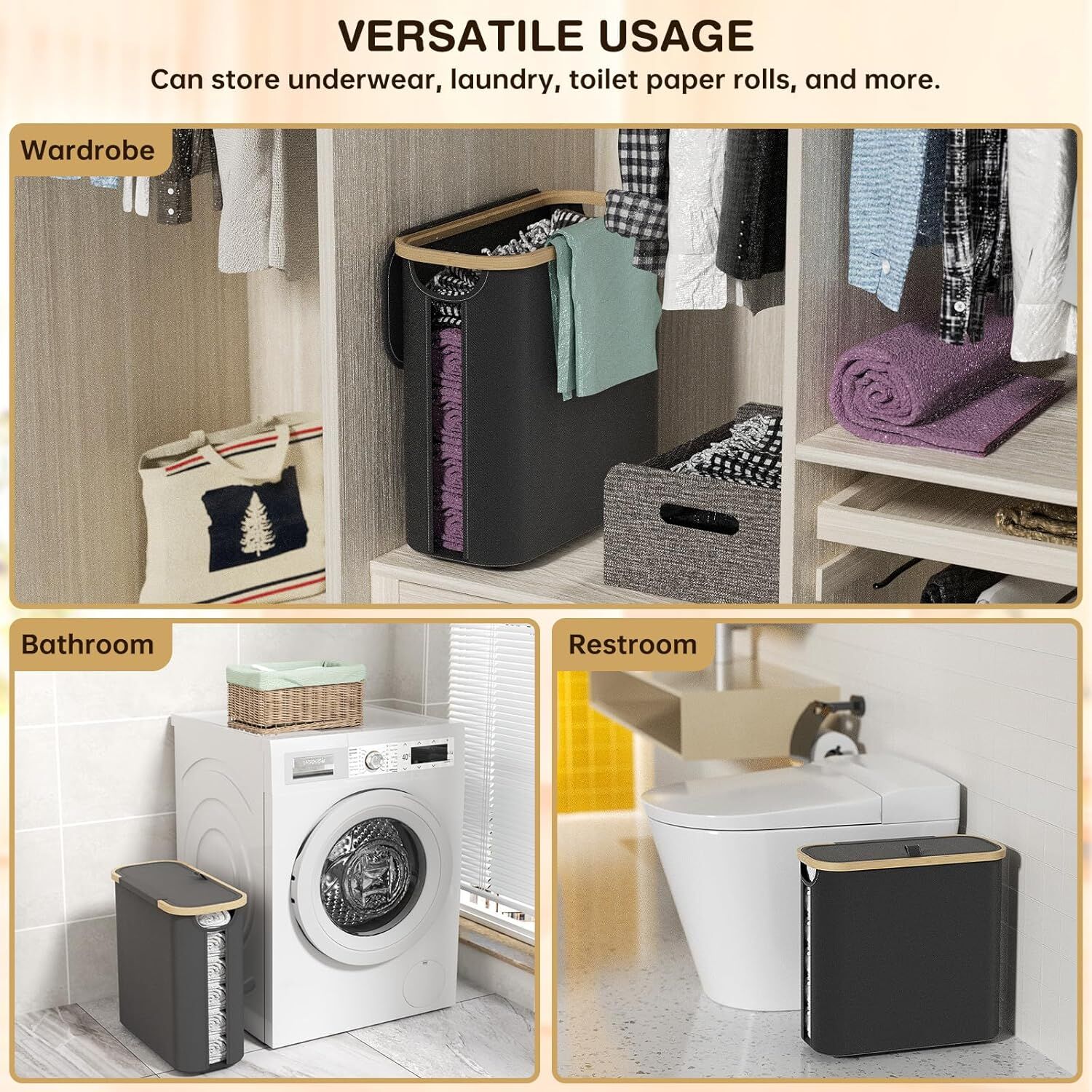 CARLA HOME Toilet Paper Storage Basket Holds Up to 12 Rolls with Bamboo Lid and Handle for RV Closet (Black)
