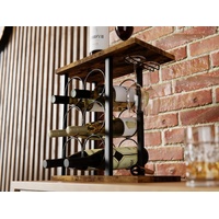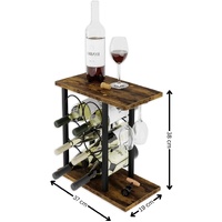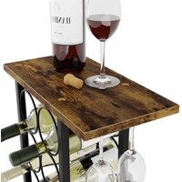 CARLA HOME Wine Rack Countertop Wooden & Metal Holder for 6 Bottles & 2 Glasses