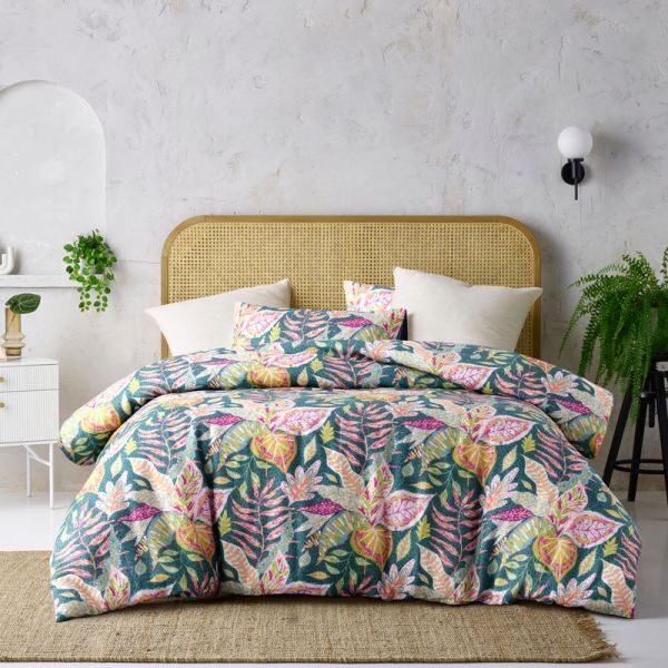 NOW $94.46Layer your bed with our stylish Carmila Printed Linen Cotton Quilt Cover Set by Accessorize. This quilt cover set is a dream to sleep in all year round. It features botanical design printed in nature colour tones of white, pink, teal, green, red, blue, yellow, and orange that is perfect to give your master bedroom a refreshing look. It is made from quality and soft touch Linen Cotton fabric with softness you can enjoy all night long.