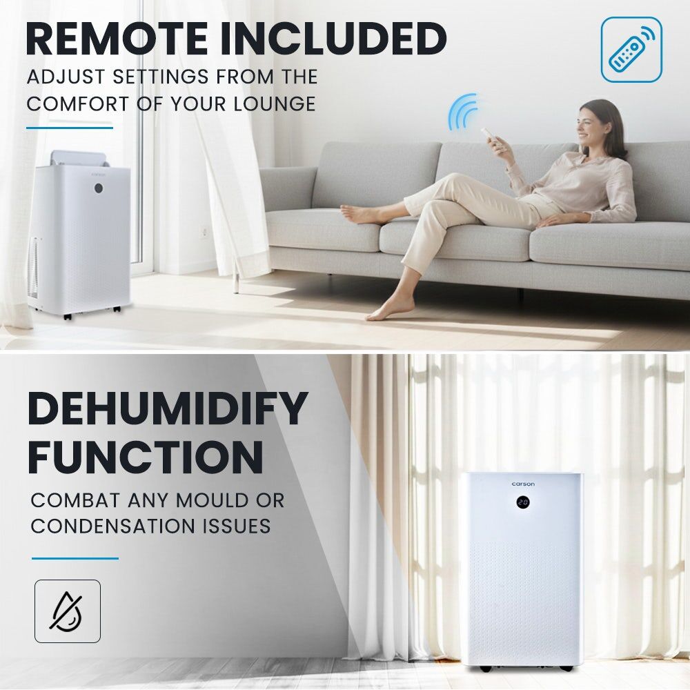 Keep your home comfortable with the Carson PA280 Portable Air Conditioner. Just sit back, relax, and use the remote control to adjust the temperature from the comfort of your lounge. This compact unit is ideal for cooling rooms of up to 25 square metres.