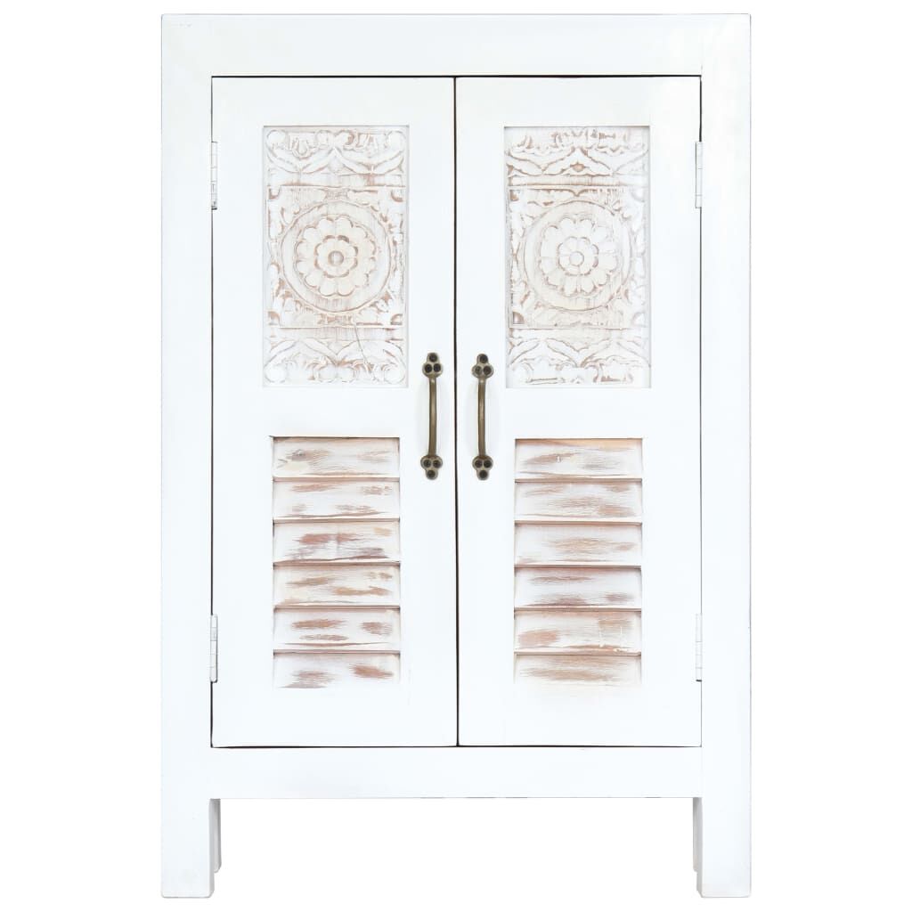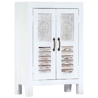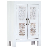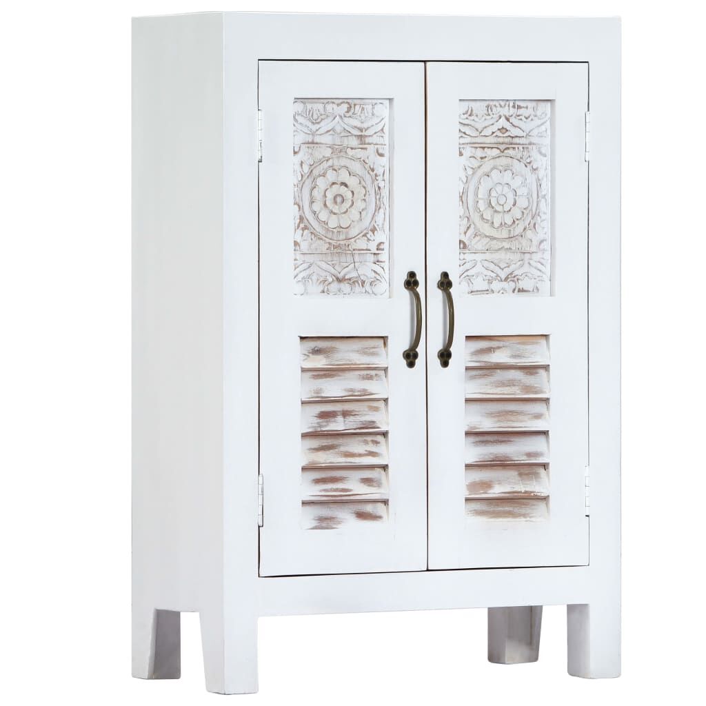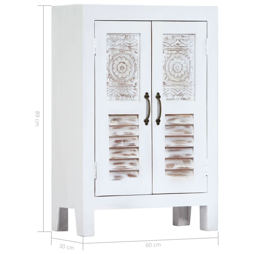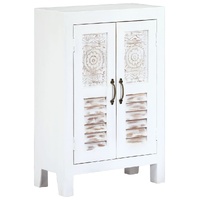 Invoking a sense of aesthetics, this wooden sideboard oozes an elegant charm that will add a truly eye-catching piece to your home decor. The cabinet is made of solid mango wood, a hardwood with dense grains. Rough mango wood not only has the strength to bear the weight, but also stands the wear and tear of time. Accordingly, this beautifully-designed dresser is exceedingly stable, durable and aesthetically-appealing. The exquisite craftsmanship and the beautiful wood grains make every piece of furniture distinctive and slightly different from each other. Additionally, this dresser features 2 compartments with 2 doors, providing ample space for storing your shoes, books, as well as various other items. Important note: The wood grains vary from piece to piece, making each piece unique. The delivery is random, ensuring the exclusivity and individuality of your product.