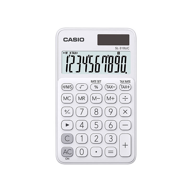 Casio SL310UCWE 10 Digit Tax Time Calculator is perfect for taking to school or keeping handy at home or work. It has a clean and simple, large display so you can see your workings, plus it comes with special buttons for calculating tax and time.