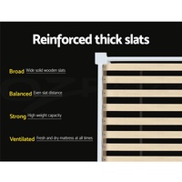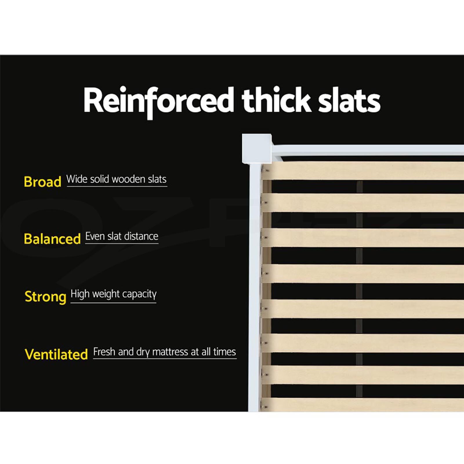 $214.31Made of natural pine wood, the Rio bed frame is ideal for your kids as it for any adult. Strong and sturdy, the bed frame comes with a solid timber slated base, stylish headboard, heavy duty steel fixings and smooth edges all round. Finished in a non-toxic, white paint, the neutral coloured bed frame makes for easy decoration coordination with any bedroom. The bed frame becomes an instant storage area with acres of space for your bedding essentials. Go extra neat and tidy. So create more and expand your home storage capacity with the Artiss Rio Bed Frame. Get yours today.