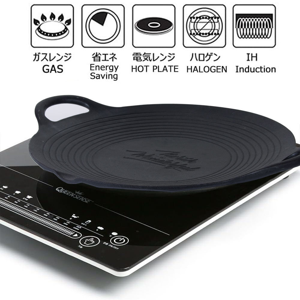 bbq pan is adaptable to multi heat source - can be used on induction or electric cooktop, gas stove top and hot plate, etc. Round cast iron frying pan also can be used on oven, stove, grill or campfire and heats up in minutes
