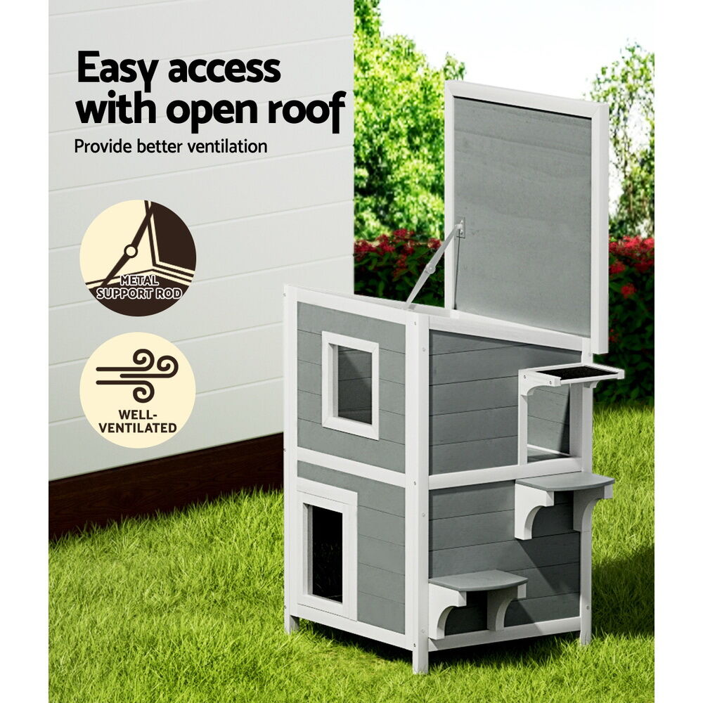 $142.87Gift your pets and fun and functional play house with the i.Pet Pet Hutch. This outdoor and indoor shelter is made from solid fir wood with a weather-resistant hinged asphalt roof and additional rainproof eaves. Three exit points and a transparent flap door give your pets plenty of ways to get in and out of their play space. An easy-viewing window lets them view the world in comfort, while two sturdy jumping platforms encourage their natural climbing instincts. The floor is removable to help with cleaning, and the rooftop can be opened for easier ventilation. Spacious and comfortable, the pet hutch is suitable for small pets such as cats, puppies and rabbits. Enrich your pets and help them flourish with the i.Pet Pet Hutch.