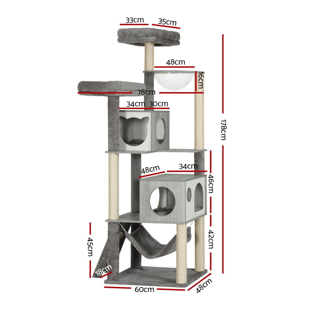 $117.49Built to satisfy the natural instincts of your precious pet, our i.Pet Cat Tree includes a host of nooks and crannies for your cats to have hours of fun scratching, hunting, climbing, jumping, hopping or simply lounging around. The medium-sized cat tree is built on a stable base to prevent tipping and the sturdy wood construction is built to last through years of play. Natural sisal posts encourage your cat's scratching instincts and help maintain healthy claws. The plush, soft linen cover will lull your cats to sleep on two plush bed platforms, one fabric hammock, a bubble dome, a closed cubby and a private cat-shaped cubicle. With multiple levels and access points your cats can jump, climb and observe the home on high. Keep your cat feline fine with an i.Pet Cat Tree.