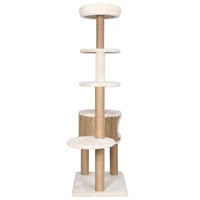 Keep your lovely cats entertained endlessly with our cat tree. This all-in-one cat play centre features a ton of super fun and exciting activities for your favourite little ones. The tall cat tree includes multiple perches and a condo house so that your cats can scratch, perch, climb and also relax to their heart's content. The scratch poles are wrapped in seagrass, which is exceedingly comfortable for your feline friends to sharpen their claws. The top perch is designed with luxury cushion to provide a cosy place for your furry friends to relax or take a nap. Additionally, it includes a hanging ball for extra fun.