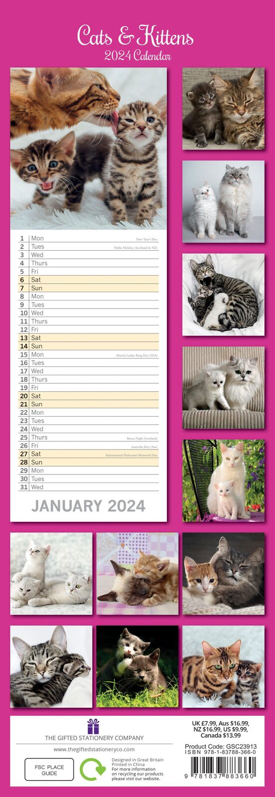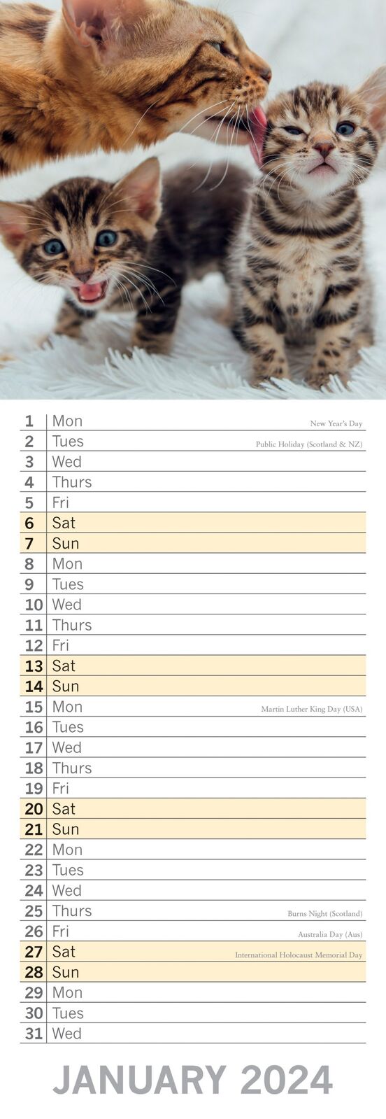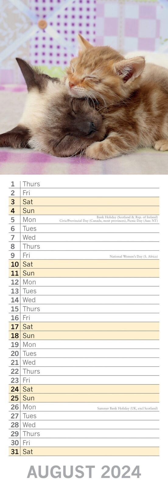 Cats & Kittens - 2024 Slimline Slim Wall Calendar Hanging Planner New Year Gift