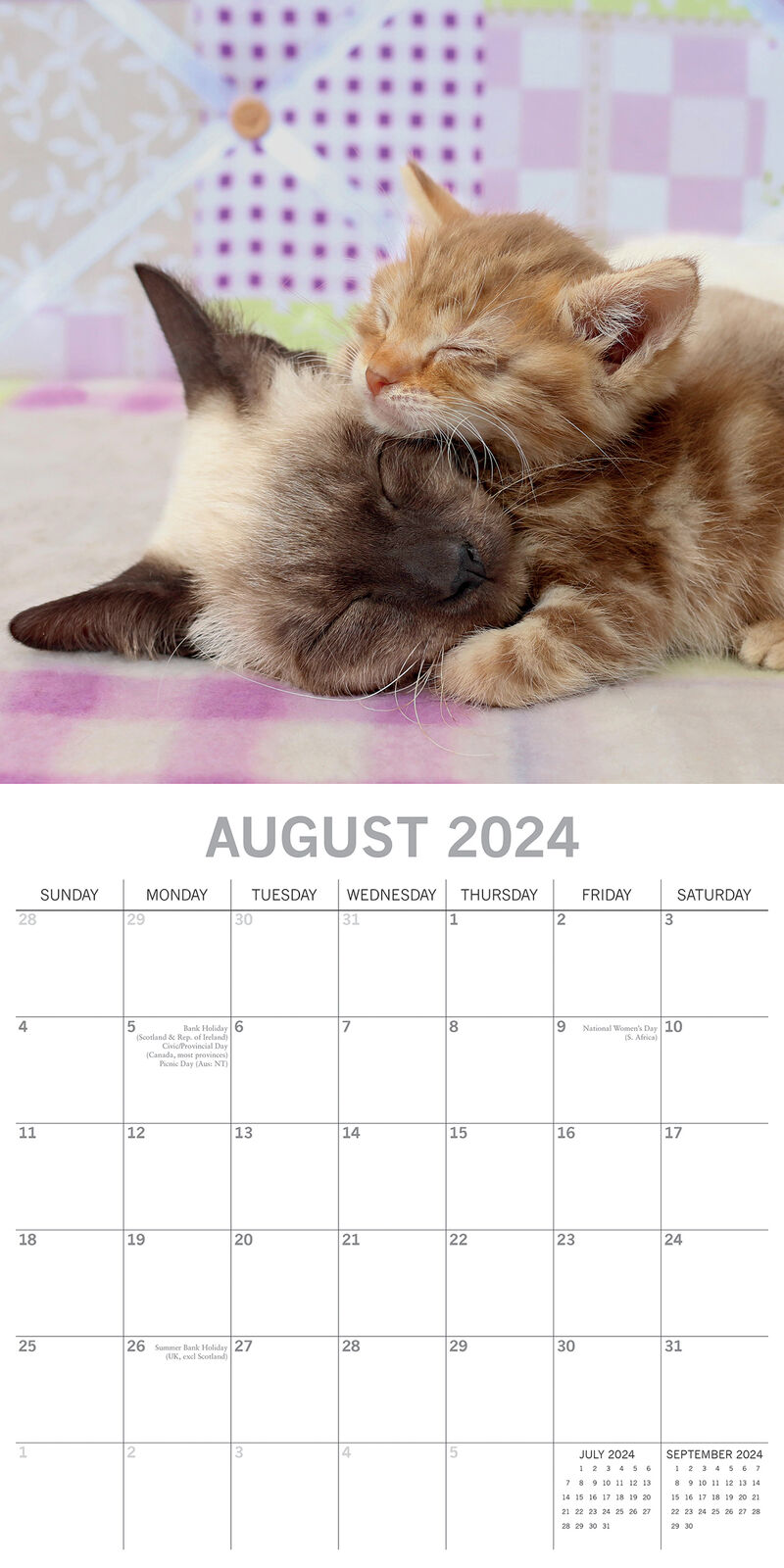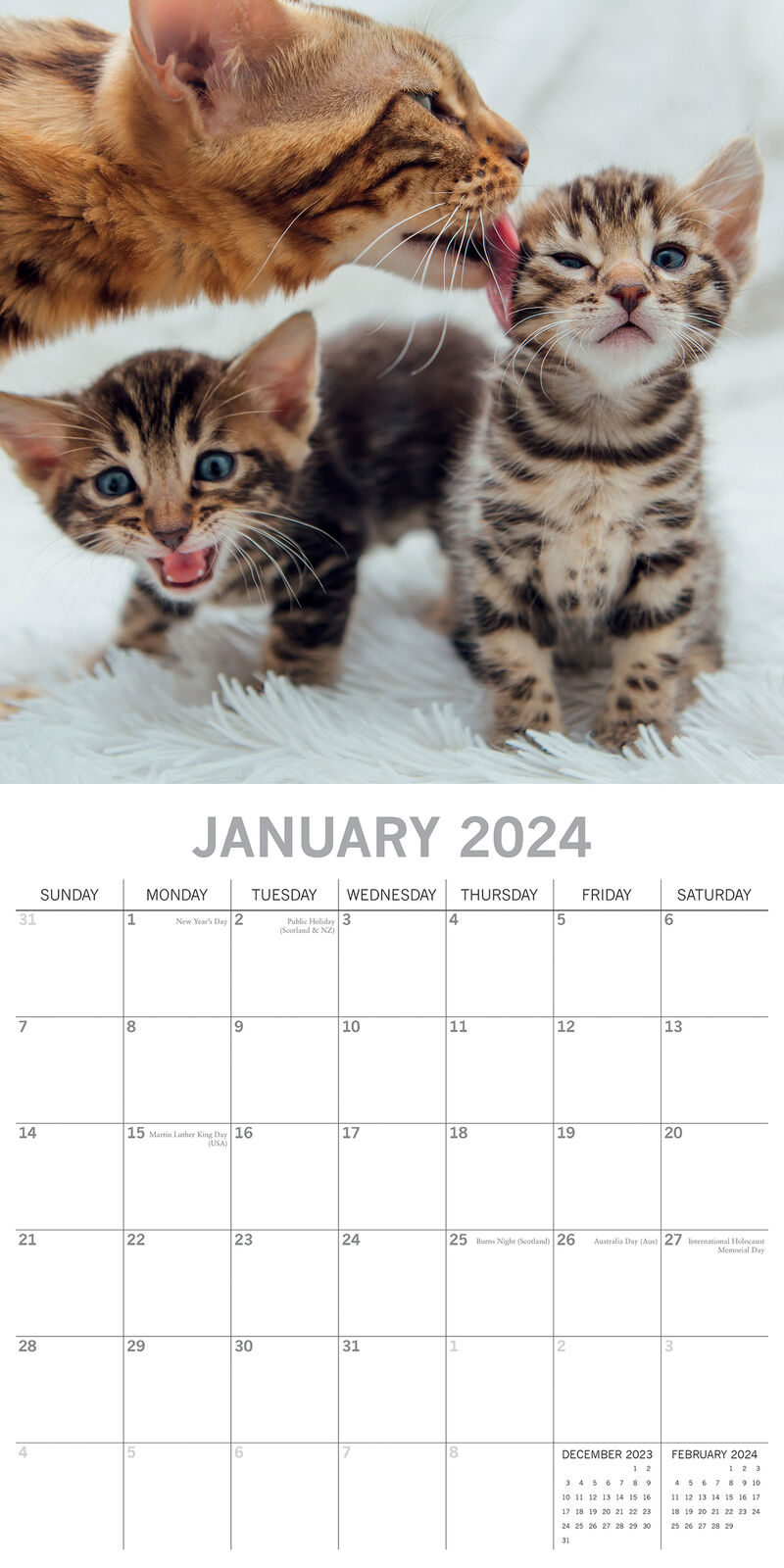 Full of frolic and fun, kittens are little bundles of joy. This mini calendar features just black cat kittens. Fuzzy and dark, they’ll pounce their way right into your heart. This delightful Black Kittens mini calendar is sure to make a wonderful addition to any home. Brand New Calendar with Beautifully design, Sealed in Original Packaging, each calendar includes a large grid running from Sunday to Saturday. Publisher: The Gifted Stationery Co. Dimensions: 30cm (w) x 30cm (h) closed; 30cm (w) x 60cm (h) opened Time Span: 16 months (January to December 2024 monthly, September to December 2023 on-a-page) 2024 Square Wall Calendar featuring beautiful colour photographed images for every month of the year. Like most Wall calendars, this one comes with: