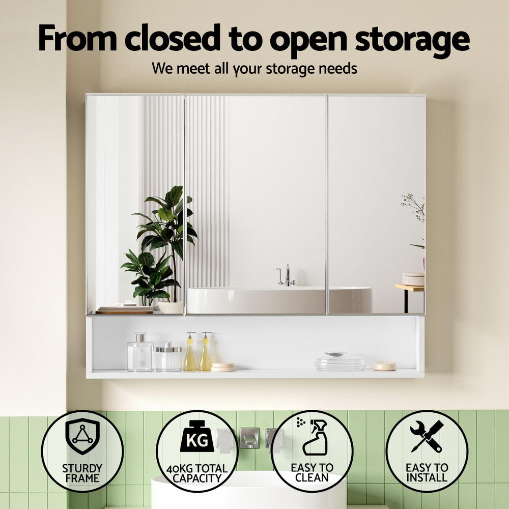 NOW $134.06The Cefito Medicine Cabinet combines sophisticated design with practical functionality for the Australian bathroom. Its triple mirrored doors not only provide multiple reflection angles for grooming but also conceal generous storage space behind them. The clever addition of an open shelf offers convenient access to everyday items like hand soap or perfume.